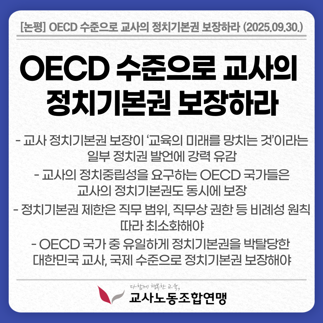 OECD 수준으로 교사의 정치기본권 보장하라(2025.09.30.)